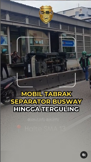 Satu unit mobil menabrak separator Bus TransJakarta hingga terguling di Halte Wali Kota Jakarta Utara arah Plumpang, Jl. Yos Sudarso, Kb. Bawang, Kec. Tanjung Priok, Jakarta Utara, Minggu (1/12) sekitar pukul 17.00 WIB. Akibat insiden tersebut, halte bus TransJakarta sempat tidak bisa digunakan oleh para penumpang. Kecelakaan juga menyebabkan kemacetan di sekitar lokasi kejadian.