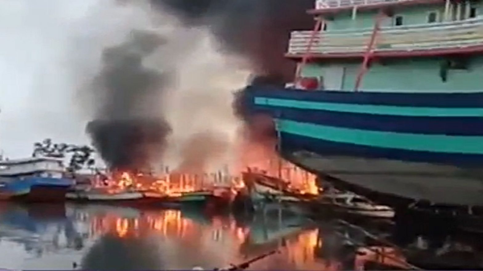Belasan kapal yang berada di kolam perbaikan kompleks Pelabuhan Jalan Bali, Kota Tegal, Jawa Tengah, ludes terbakar. Sebanyak 10 unit mobil damkar dikerahkan ke lokasi kejadian. Namun, proses pemadaman terkendala oleh sulitnya akses jalan menuju lokasi.