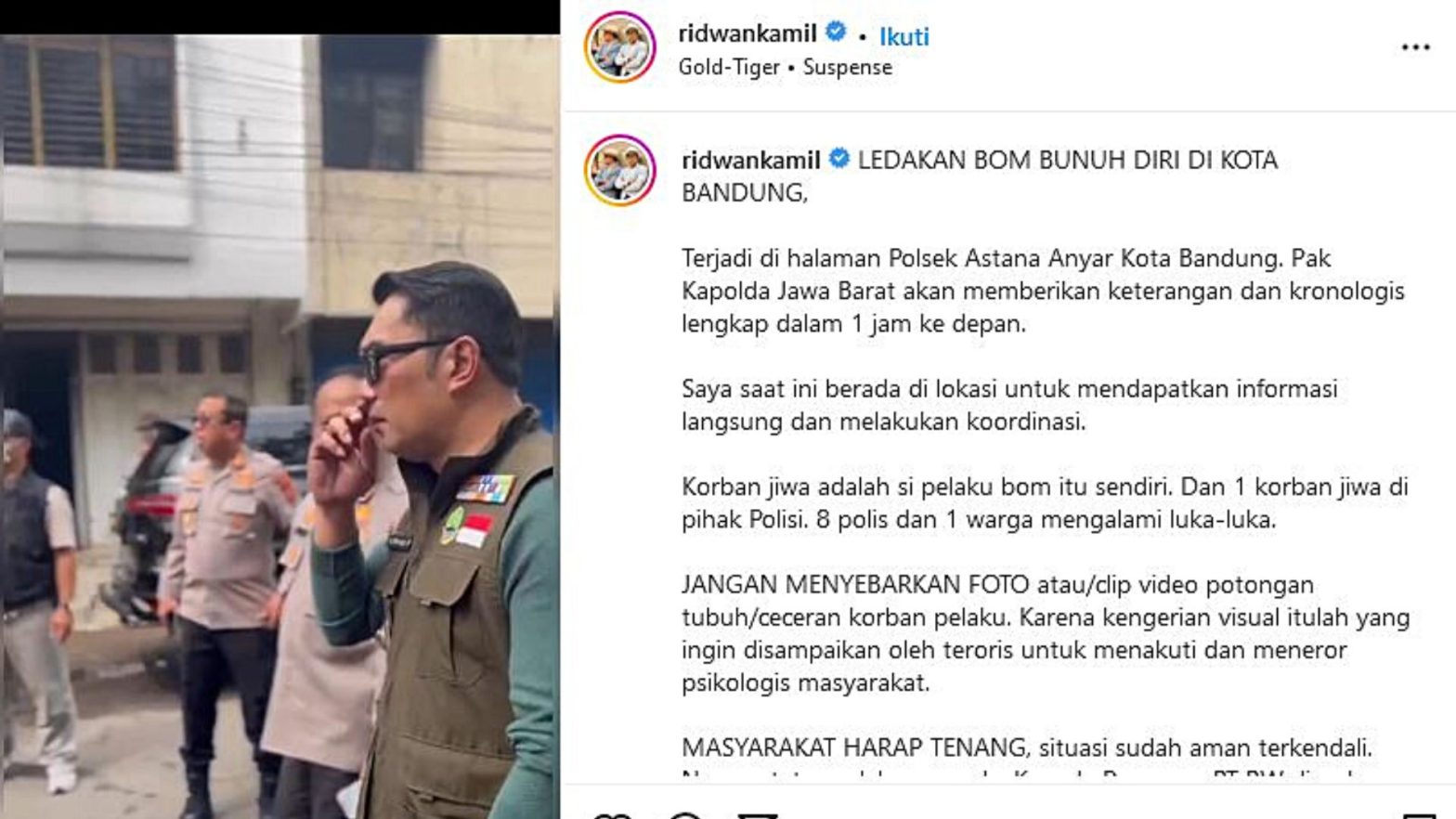 Ridwan Kamil: Korban Jiwa Hanya Pelaku Bom
