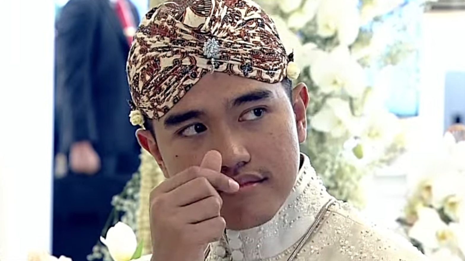 Ada momen menarik saat Kaesang Pangarep menunggu ijab kabul, Sabtu (10/12) siang. Putra bungsu Presiden Joko Widodo memberikan salam “saranghaeyo” ke tamu undangan yang hadir di Pendopo Agung Kedaton Ambarrukmo, Sleman, Yogyakarta.