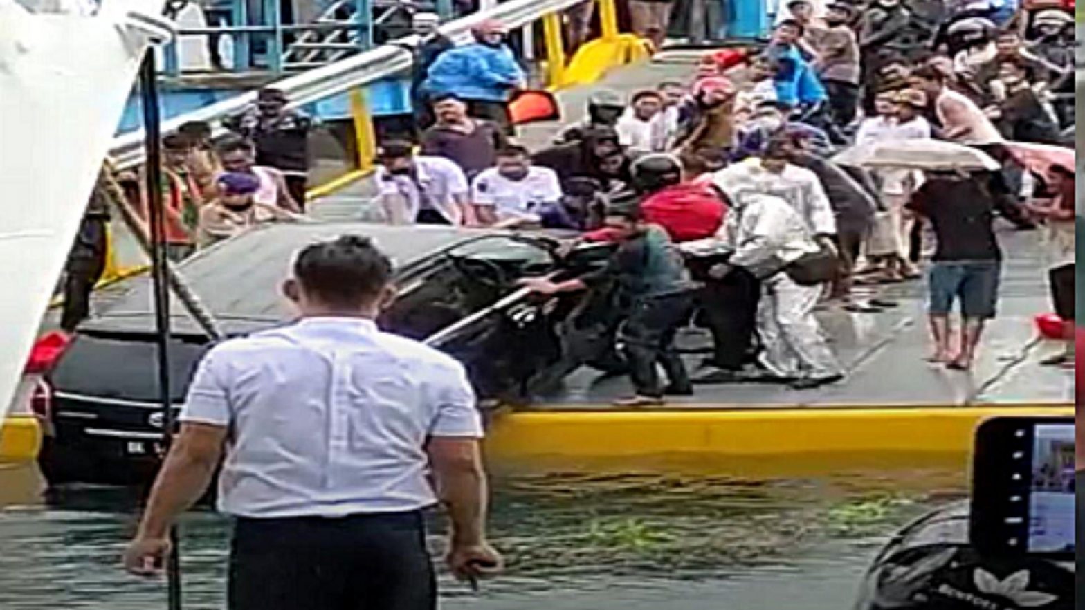 Sebuah mobil terjun ke danau, saat kapal penyebrangan tengah bersandar, di Pelabuhan Ambarita, Kabupaten Samosir, Sumatera Barat. Akibat kejadian ini, satu orang tewas di lokasi kejadian.