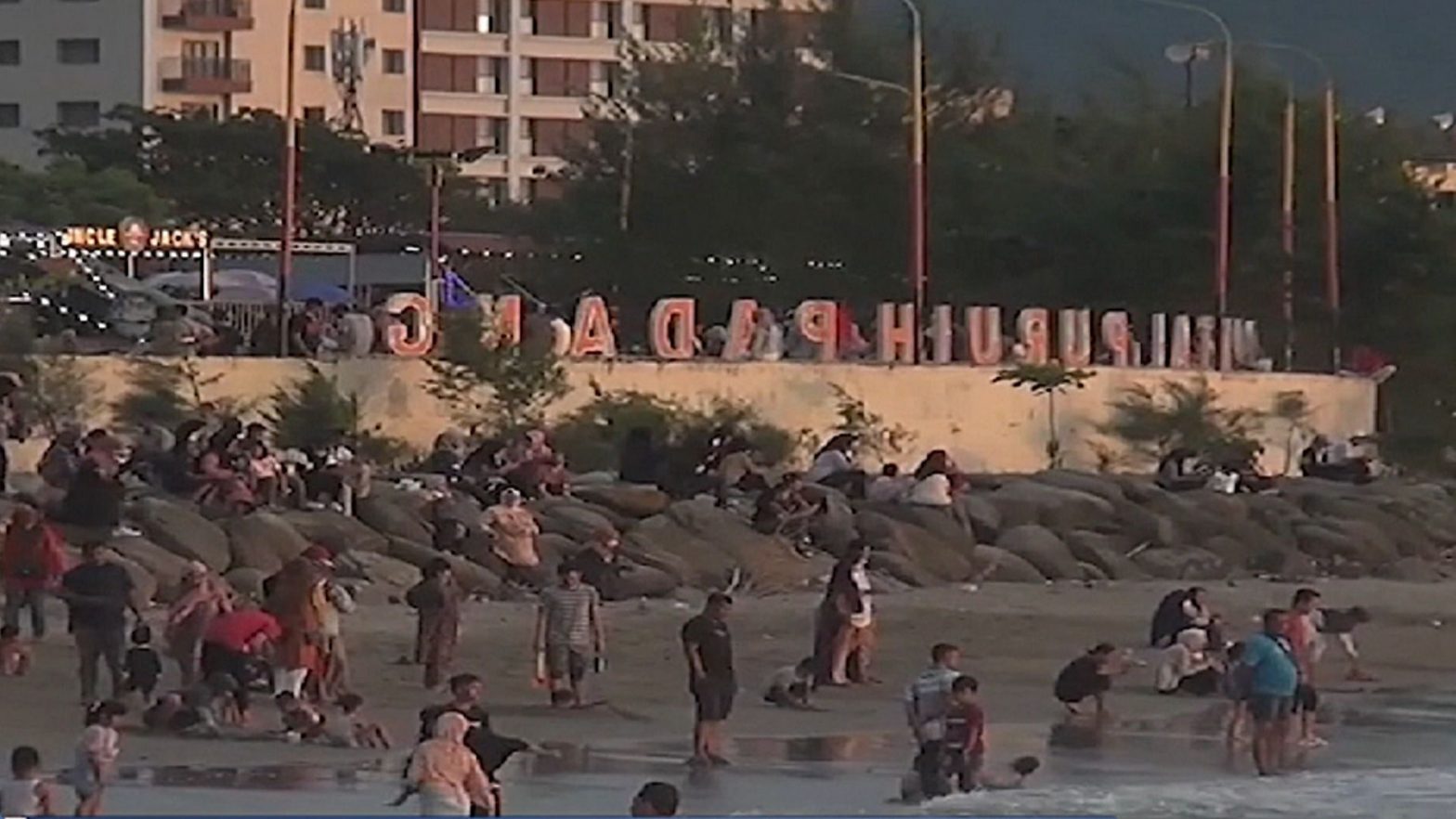 Ratusan pengunjung memadati kawasan wisata Pantai Cimpago, Padang, Sumatra Barat, untuk menghabiskan libur Natal 2021 dan tahun baru 2022. Namun, sebagian pengunjung terlihat tidak lagi memakai masker dan menerapkan protokol kesehatan. Hal itu pun sangat disayangkan, mengingat pandemi corona yang belum berakhir.