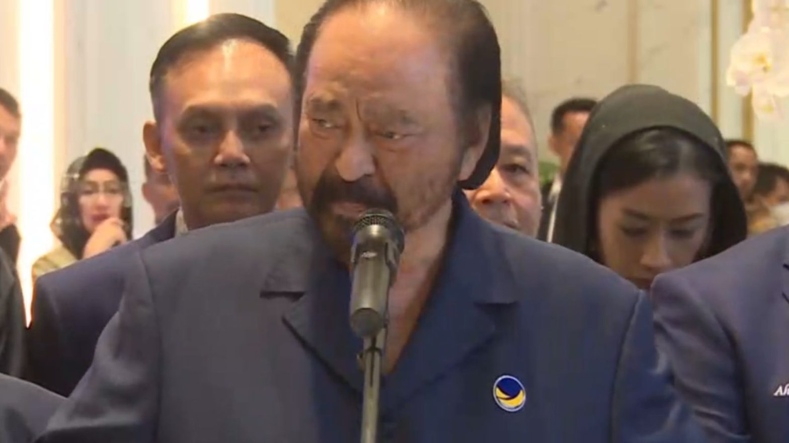 Ketua Umum Partai NasDem, Surya Paloh, memberikan keterangan pers, terkait ditahannya Sekjen Partai NasDem yang juga Menkominfo, Johnny G Plate, oleh Kejaksaan Agung. Menurut Surya Paloh, tidak benar ada intervensi politik dan kekuasaan dalam penahanan Johnny G. Plate atas kasus dugaan korupsi proyek penyediaan infrastruktur BTS 4G.