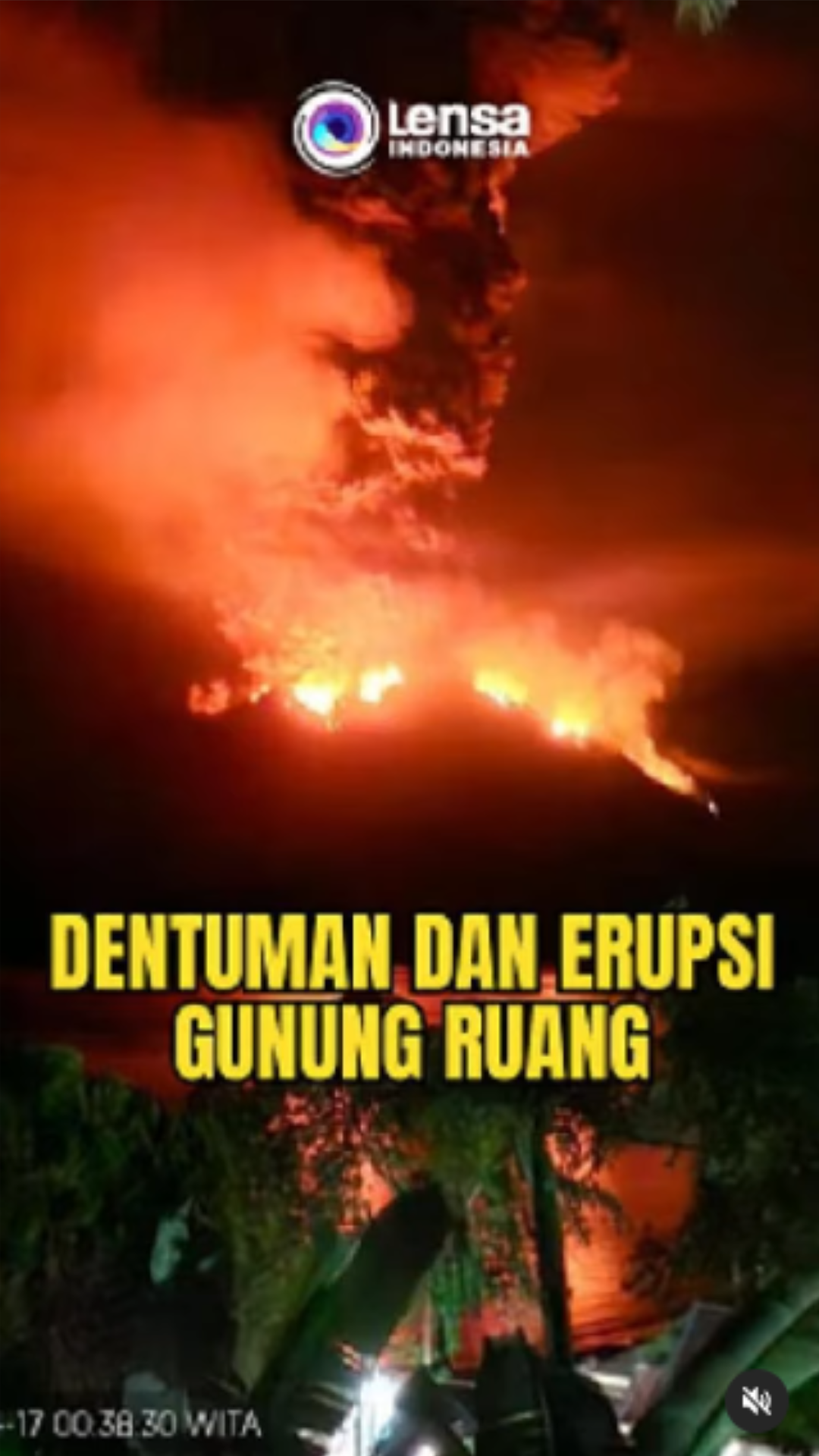 Gunung Ruang di Kabupaten Sitaro, Sulawesi Utara, kembali erupsi pada Selasa (30/4) pukul 01.15 WITA. Tinggi kolom letusan teramati ± 2000 m di atas puncak (± 2725 m di atas permukaan laut). Terlihat abu vulkanik abu berwarna kelabu dengan intensitas sedang hingga tebal ke arah utara. Kepala Pos PGA Sitaro Yudia Tatipang mengatakan, sempat terdengar gemuruh panjang dan hujan batu. Masyarat diimbau untuk waspada. #gunungruang #erupsigunung #erupsigunungruang #abuvulkanik #infogunung #hujanbatu #sitaro #sulut Lihat postingan ini di Instagram Sebuah kiriman dibagikan oleh Lensa Indonesia RTV (@lensaindonesiartv)