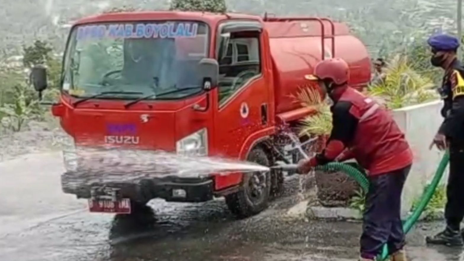Tim Gabungan Bersihkan Abu Vulkanik Merapi di Desa Klakah Boyolali