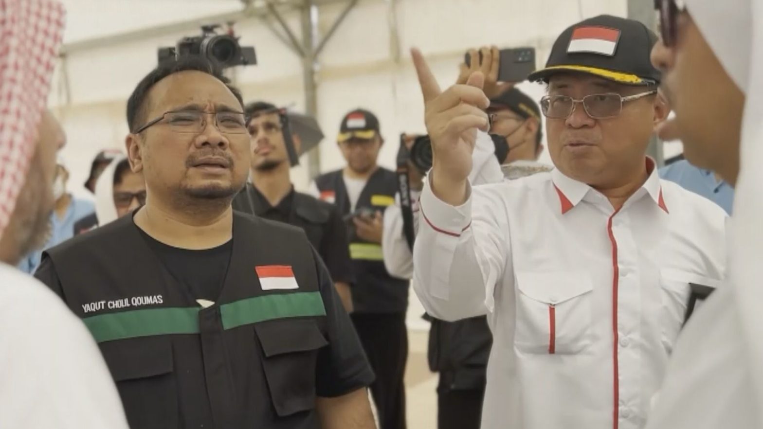 Menteri Agama (Menag), Yaqut Cholil Qoumas, meninjau kesiapan layanan jemaah haji Indonesia di Mina, Arab Saudi. Menag melihat kesiapan sejumlah fasilitas, seperti klinik kesehatan, pendingin ruangan, dan toilet, yang akan digunakan para jemaah selama, pada puncak pelaksanaan ibadah haji.