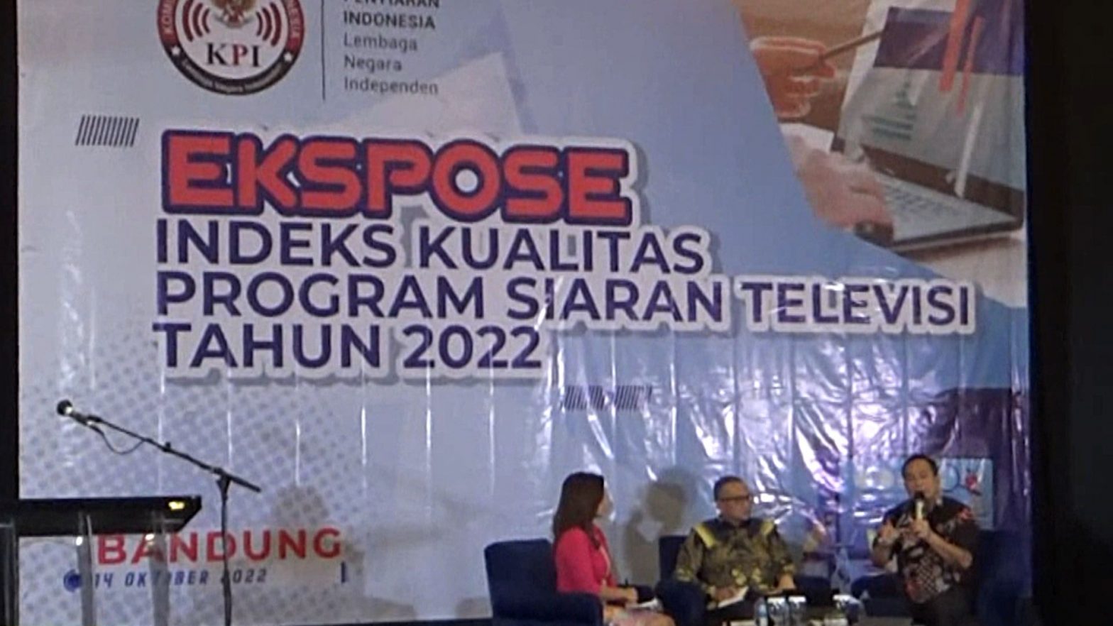 Komisi Penyiaran Indonesia menggelar Kegiatan Ekspose Indeks Kualitas Program Siaran Televisi 2022, yang digelar di Kota Bandung, Jawa Barat, pada Jumat (14/10). Dari hasil riset indeks kualitas program siaran televisi, rata-rata kualitas program televisi saat ini memiliki nilai 3, atau bisa dikatakan cukup baik. Selain itu, KPI juga menekankan penguatan hak cipta konten kreatif, antara media televisi dan media sosial.