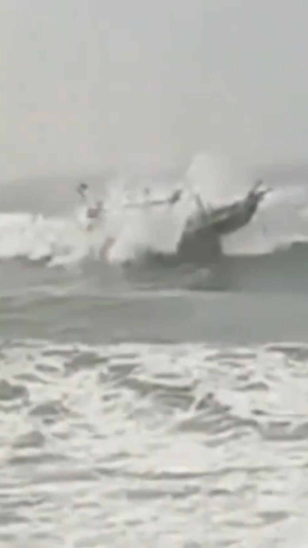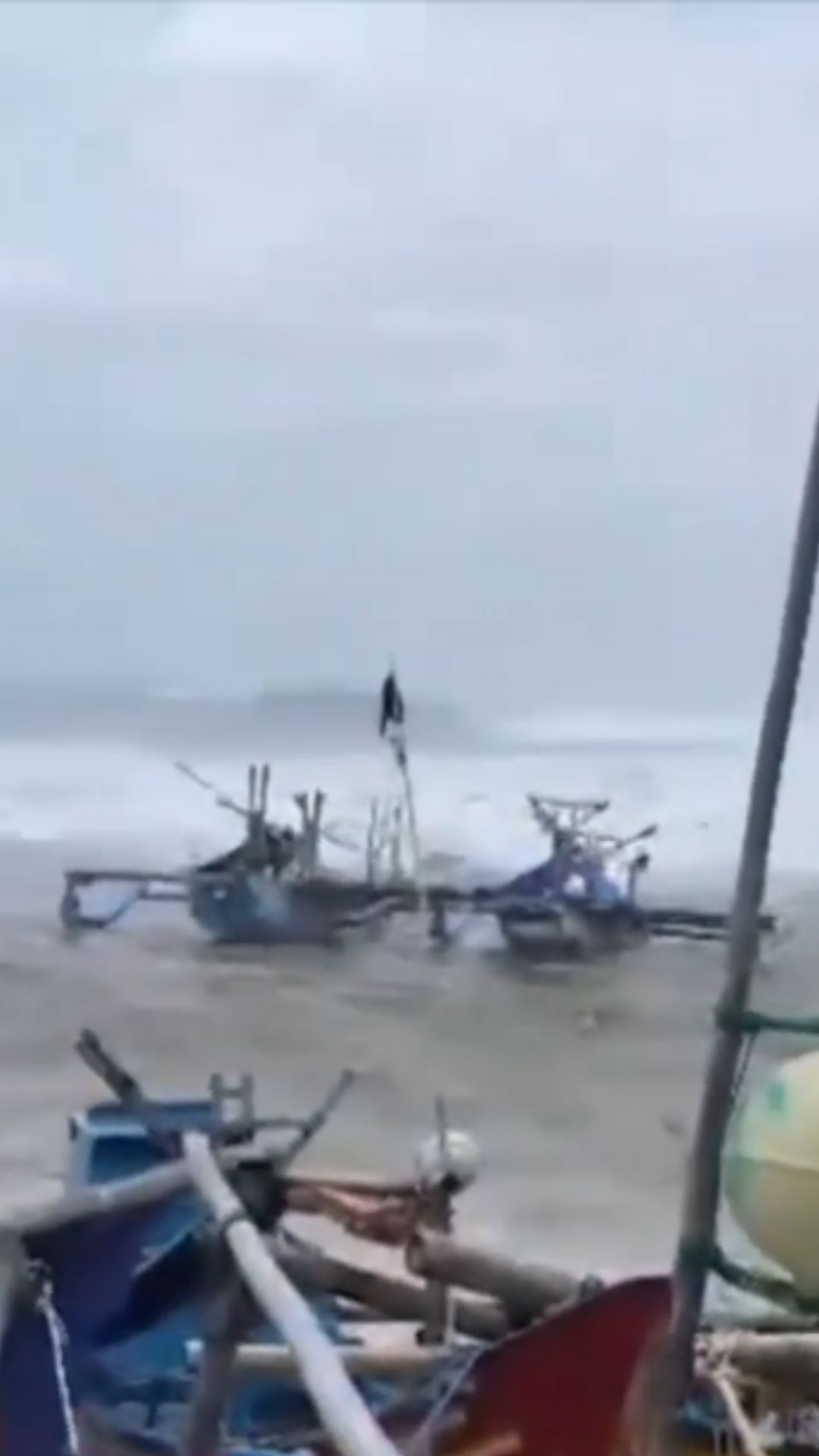 DITERJANG GELOMBANG TINGGI, PERAHU NELAYAN TERBALIK
