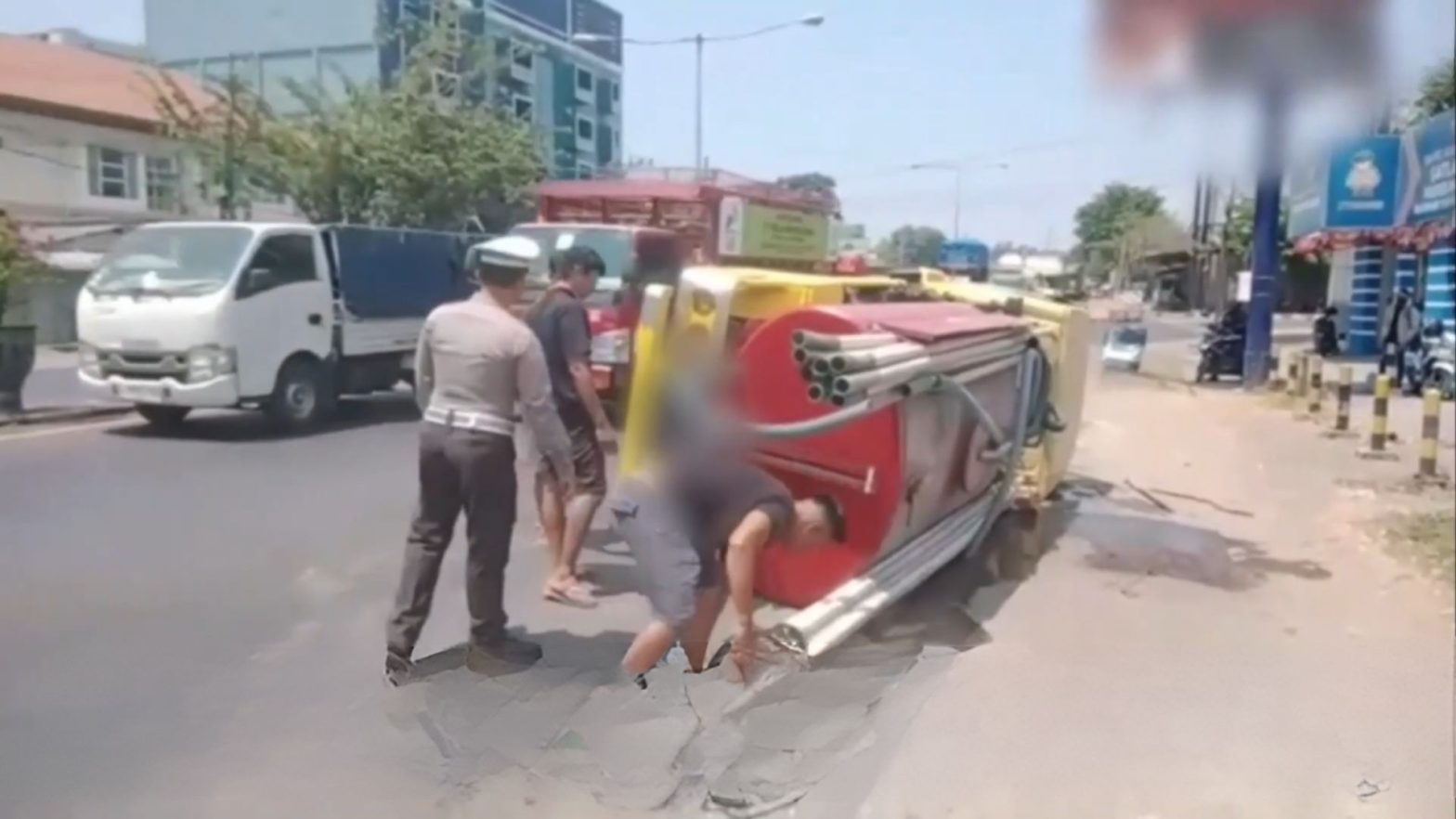 Truk Tinja Terguling, Muatan Tumpah di Jalan Raya