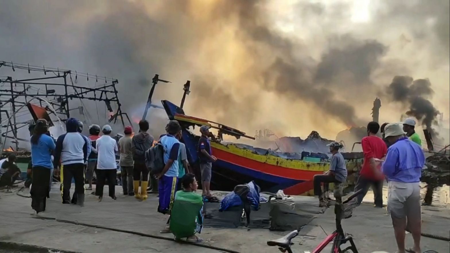 Puluhan kapal ikan di Pelabuhan Perikanan Pantai Jongor, Kota Tegal, Jawa Tengah, ludes terbakar. Dugaan sementara, kebaran terjadi akibat percikan api yang mengenai tempat penyimpanan bahan bakar solar.
