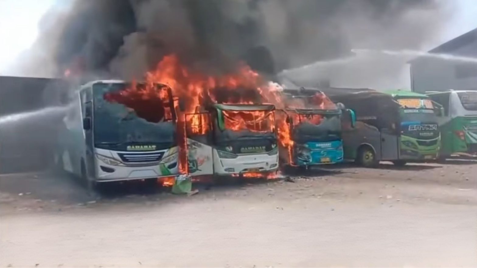 5 Bus Terbakar di Parkiran