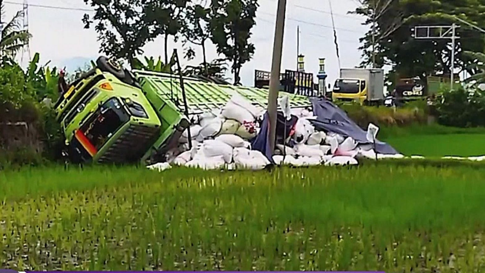 Sebuah truk bermuatan kain perca, alami kecelakaan tunggal. Trus tersebut terguling ke area persawahan di Kecamatan Pedan, Klaten, Jawa Tengah. Diduga kecelakaan terjadi karena sopir truk mengantuk. Tidak ada korban jiwa dalam peristiwa ini.