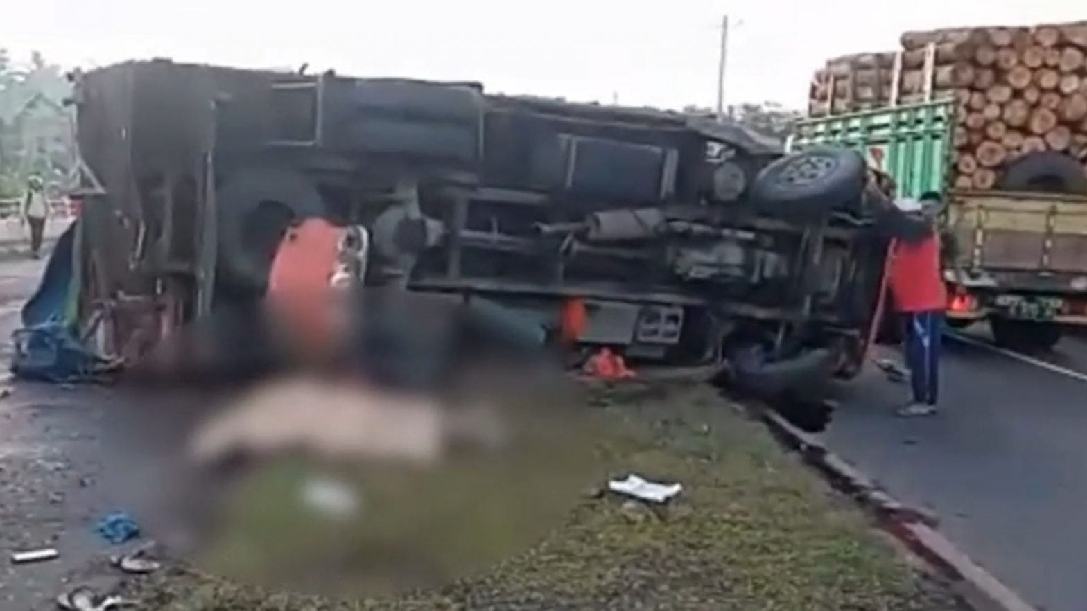 Sebuah truk bermuatan oli terbalik, usai menabrak truk yang tengah mogok, di Jalur Pantura Alas Roban, Batang, Jawa Tengah. Akibat kecelakaan tersebut, satu orang tewas mengenaskan dan seorang sopir alami luka-luka. Diduga kecelakaan terjadi karena sopir truk oli mengantuk, hingga tak bisa menghindari truk yang mogok di badan jalan.