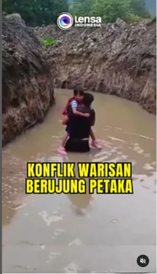 Konflik warisan dialami Darma (34) dan salah satu keluarganya di Desa Unjur, Kecamatan Ambarita, Kabupaten Samosir, Sumatra Utara. Rumah yang telah ia tempati sejak kecil, menjadi sumber sengketa. Tak mencapai kata sepakat, jalan di depan rumahnya digali atas perintah pihak berinisial TA yang berada di Pematangsiantar. Parit dengan lebar sekitar 5 meter, mengelilingi rumah tersebut. Akibatnya, Darma harus melewati derasnya air saat mengantar anaknya ke sekolah dan juga beraktivitas ke luar rumah. Darma mengklaim, rumah itu dibangun orang tuanya tahun 1982 dan telah diwariskan kepadanya. Sempat ada mediasi antar kedua belah pihak di kantor desa. Namun, kala itu sengketa hanya melibatkan sebidang tanah di sebelah rumah, bukan tanah yang menjadi pondasi rumah tersebut. #warisan #konflik #sengketa #parit #desaunjur #ambarita #samosir #sumut Lihat postingan ini di Instagram Sebuah kiriman dibagikan oleh Lensa Indonesia RTV (@lensaindonesiartv)