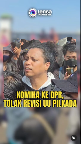 Sejumlah komika menyanyikan lagu “Agak Laen” saat demo menolak revisi UU Pilkada di depan gedung DPR, Kamis (22/8) siang. Komika Adjis Doaibu juga sempat melakukan orasi. Berpakaian serba hitam, Adjis merasa terpanggil dan mengaku tidak bisa mempercayakan urusan revisi UU Pilkada begitu saja ke wakil rakyat yang duduk di bangku DPR. Selain Adjis, beberapa komika juga hadir secara langsung di depan gedung DPR. Mereka adalah Arie Kriting, Abdur Arsyad, Abdel Achrian, Bintang Emon, Arif Brata dan juga Rigen Rakelna. Komika dan masyarakat yang hadir, menolak pengesahan Revisi UU Pilkada, dan meminta DPR tak melawan putusan Mahkamah Konstitusi (MK) terkait pencalonan kepala daerah. Hingga saat ini, rapat Paripurna DPR RI, yang beragenda persetujuan pengesahan revisi Undang-Undang tentang Pemilihan Kepala Daerah atau Pilkada ditunda. Ketua DPR dari Fraksi Partai Gerindra, Sufmi Dasco Ahmad mengatakan, anggota dewan yang hadir belum memenuhi kuorum. #ariekriting #abdurarsyad #adjisdoaibu #bintangemon #komika #standupindo #demodpr #gedungdpr #dprri #ruupilkada #pilkada #agaklaen Lihat postingan ini di Instagram Sebuah kiriman dibagikan oleh Lensa Indonesia RTV (@lensaindonesiartv)