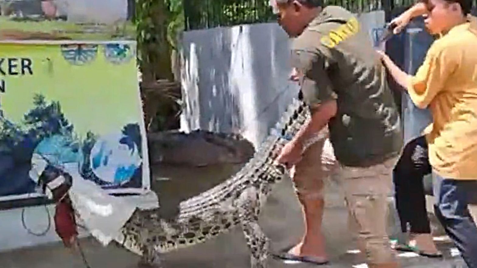 Warga Desa Tubira, Kecamatan Merbau, Kabupaten Labuhanbatu Utara, Sumatra Utara, menangkap seekor buaya yang menyerang warga. Buaya berukuran 4 meter itu, menerkam seorang ibu dan anaknya yang sedang mencuci pakaian di sungai.
