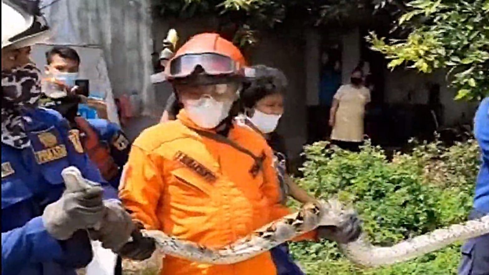Ular Sanca di Atap Rumah Hebohkan Warga Pisangan Baru Matraman
