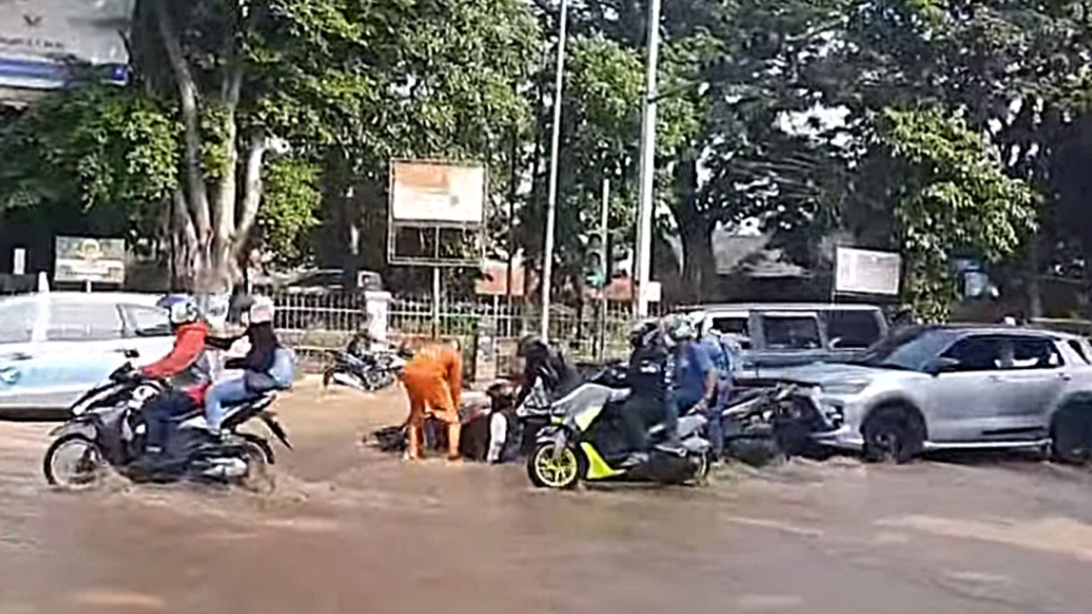 Air Kali Meluap, JL. Hek Kramat Jati Tergenang