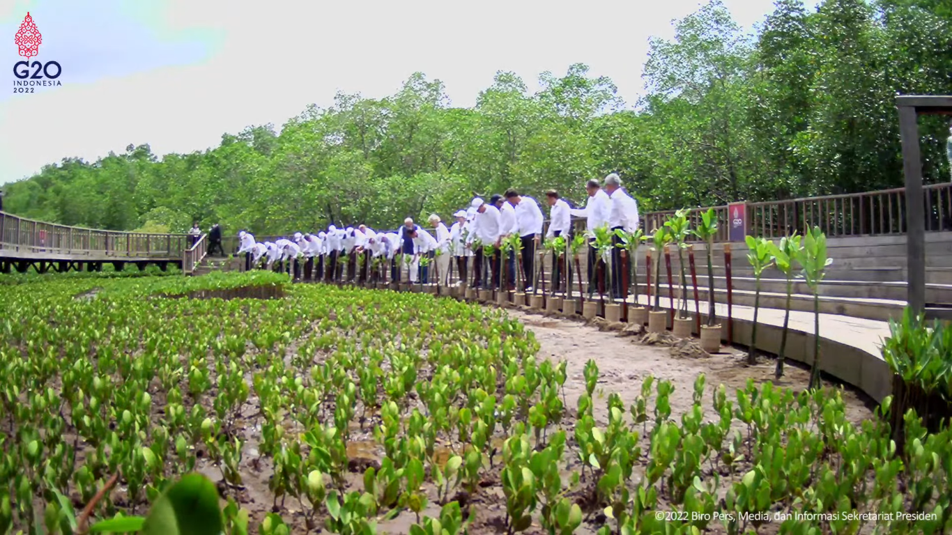 Aksi Menteri PUPR Saat Kepala Negara G20 Menanam Mangrove