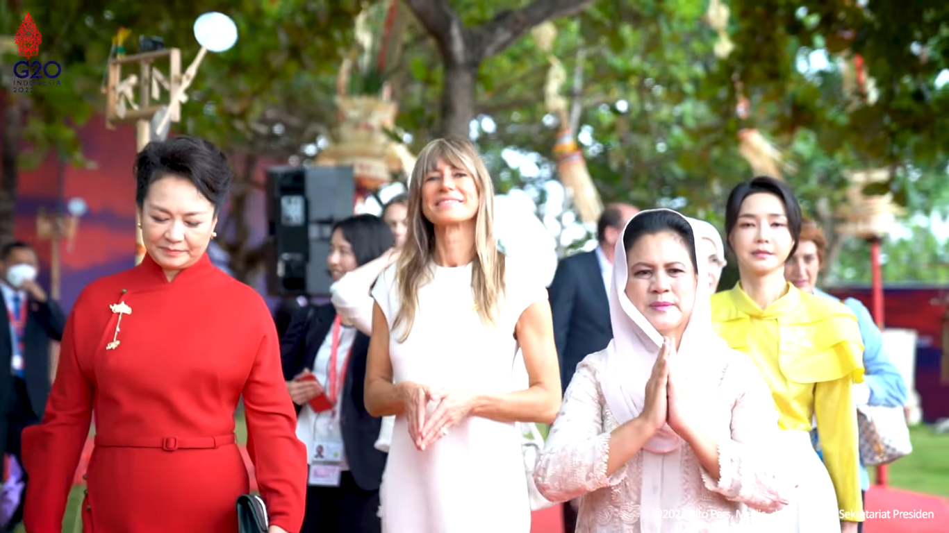 Saat para Kepala Negara melakukan rapat serius, Ibu Negara diajak oleh Ibu Negara Iriana Jokowi menikmati kearifan lokal yang dimiliki Indonesia, mulai dari pertunjukkan budaya, kerajinan, hingga hidangan khas Indonesia. Ibu Negara Iriana juga menjelaskan salah satu alat musik tradisional yang ditampilkan untuk menyambut kedatangan para pendamping di tempat acara. https://fb.watch/gQ1aEq4o9s/