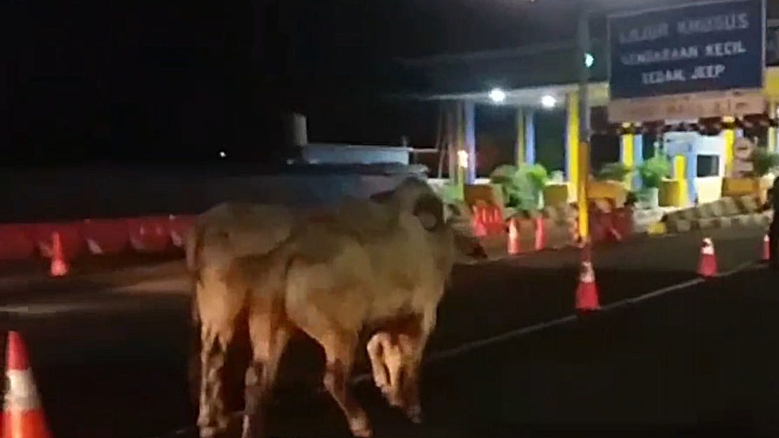 Truk bermuatan sapi ternak mengalami kecelekaan, usai terguling di Tol Cengkareng arah Bandara Soetta, Tangerang, Banten, pada Kamis (16/3) malam. Akibat kejadian itu, 2 ekor sapi terlepas berlarian di jalan tol, hingga menabrak mobil taksi yang melintas.