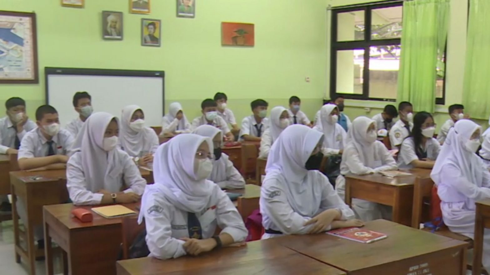 Para siswa-siswi di SMAN 77 Jakarta, mulai kembali belajar di sekolah untuk tahun ajaran baru 2022/2023, Senin (11/7). Namun sayangnya, di tahun ajaran baru ini, para siswa dihadapkan dengan melonjaknya kembali kasus Covid-19 di Indonesia, dengan munculnya subvarian baru omicron BA 4 dan BA 5. Pihak sekolah pun, mengantisipasi hal tersebut, dengan memperketat penerapan protokol kesehatan di lingkungan sekolah.