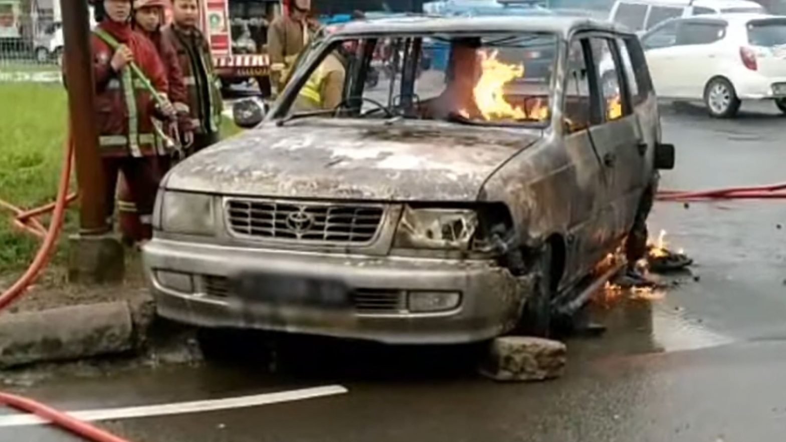 Mobil Terbakar di Depan SPBU Leuwiliang Bogor