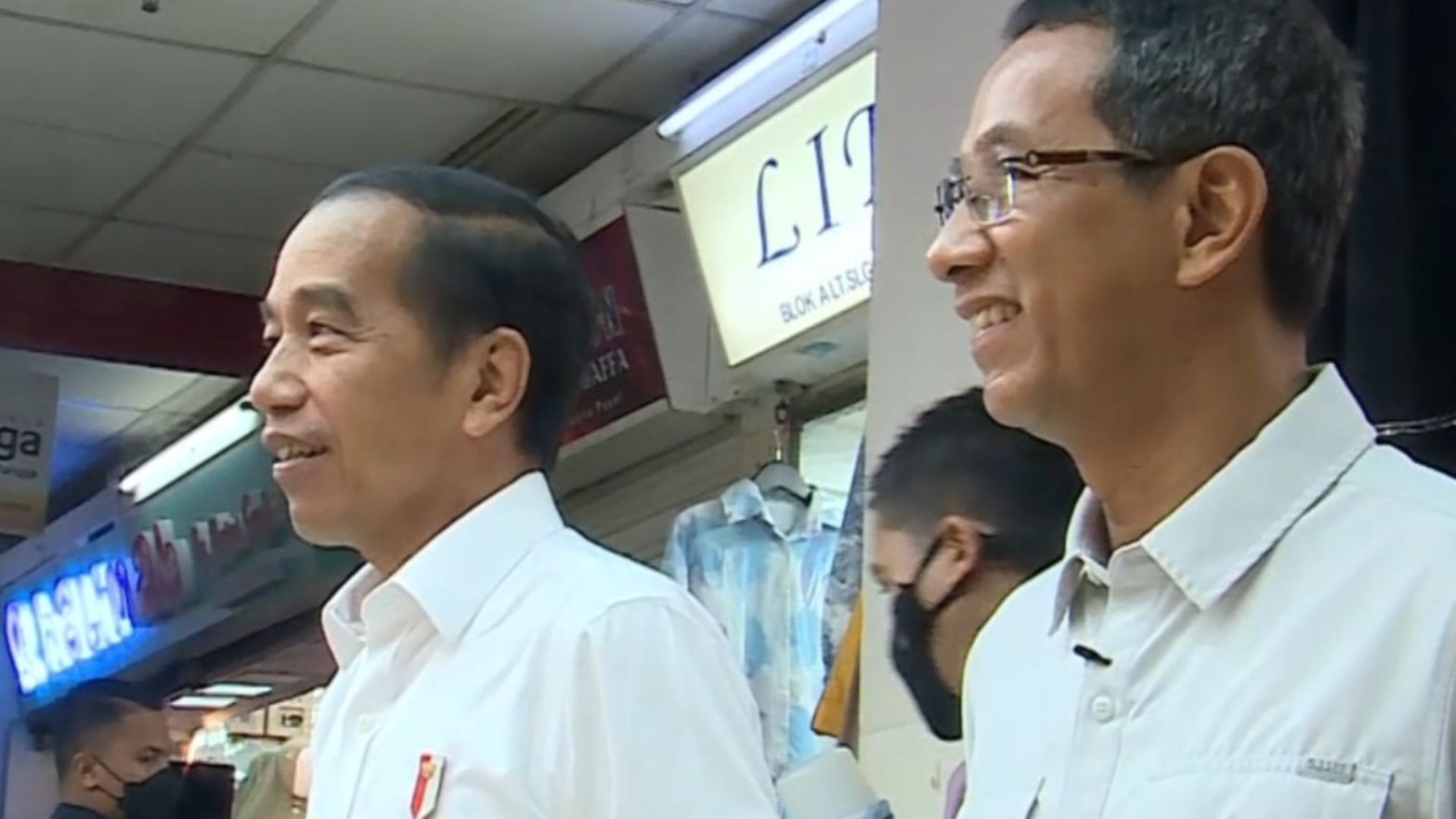 Presiden Jokowi didampingi Pj Gubernur DKI Jakarta Heru Budi Hartono, mengunjungi Pasar Tanah Abang Jakarta, Senin(2/1) pagi. Kunjungan Presiden kali ini untuk memantau kondisi pasar, setelah dicabutnya aturan PPKM.