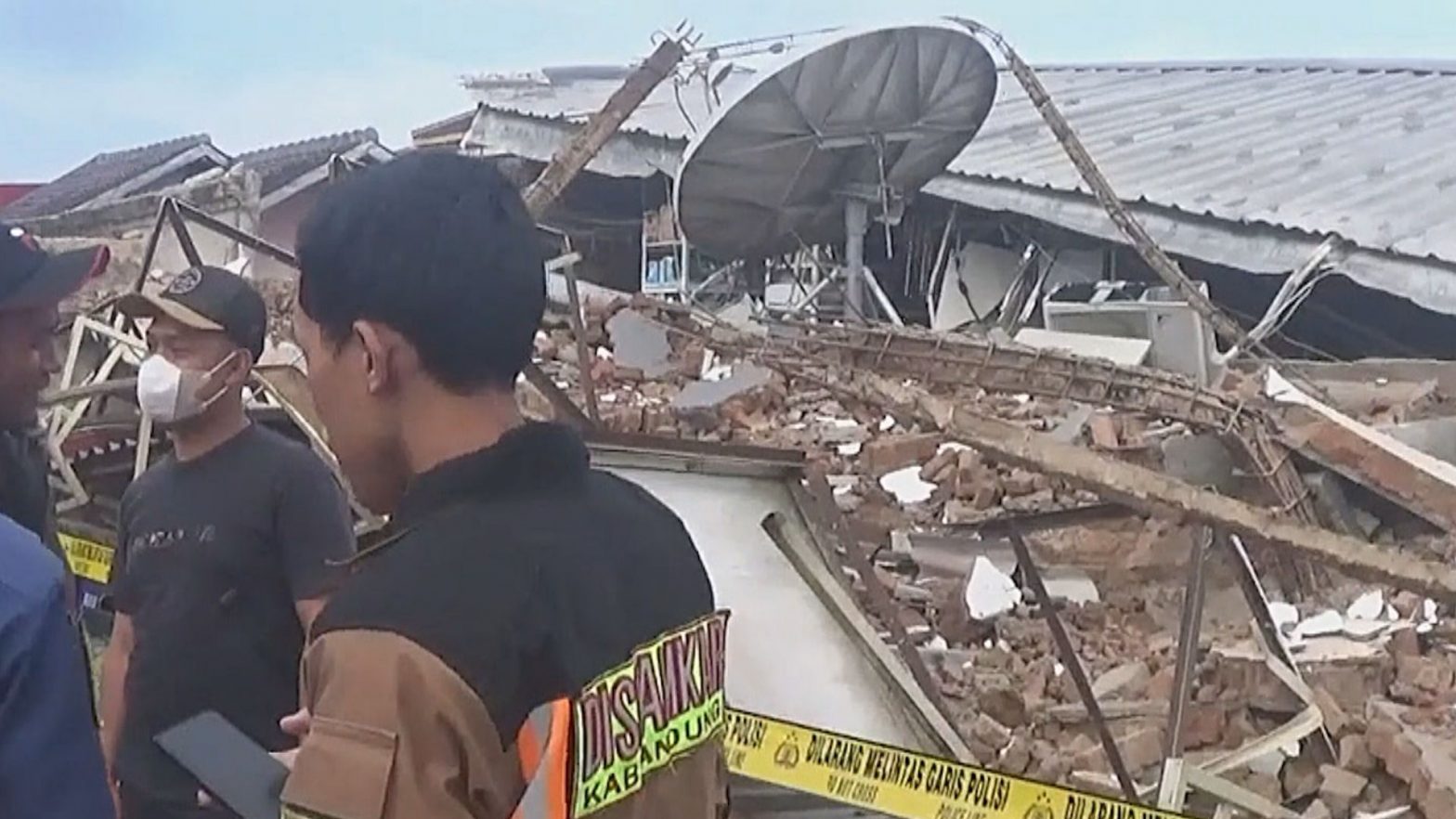 Bangunan minimarket di Desa Cisondari, Kecamatan Pasirjambu, Kabupaten Bandung, Jawa Barat, ambruk, Kamis (15/9) sore. Tanda-tanda ambruknya minimarket telah terlihat dua hari sebelom kejadian, usai ditemukan keretakan pada dinding minimarket. Tidak ada korban jiwa dalam insiden tersebut, namun arus lalu lintas di lokasi kejadian sempat mengalami kemacetan panjang.